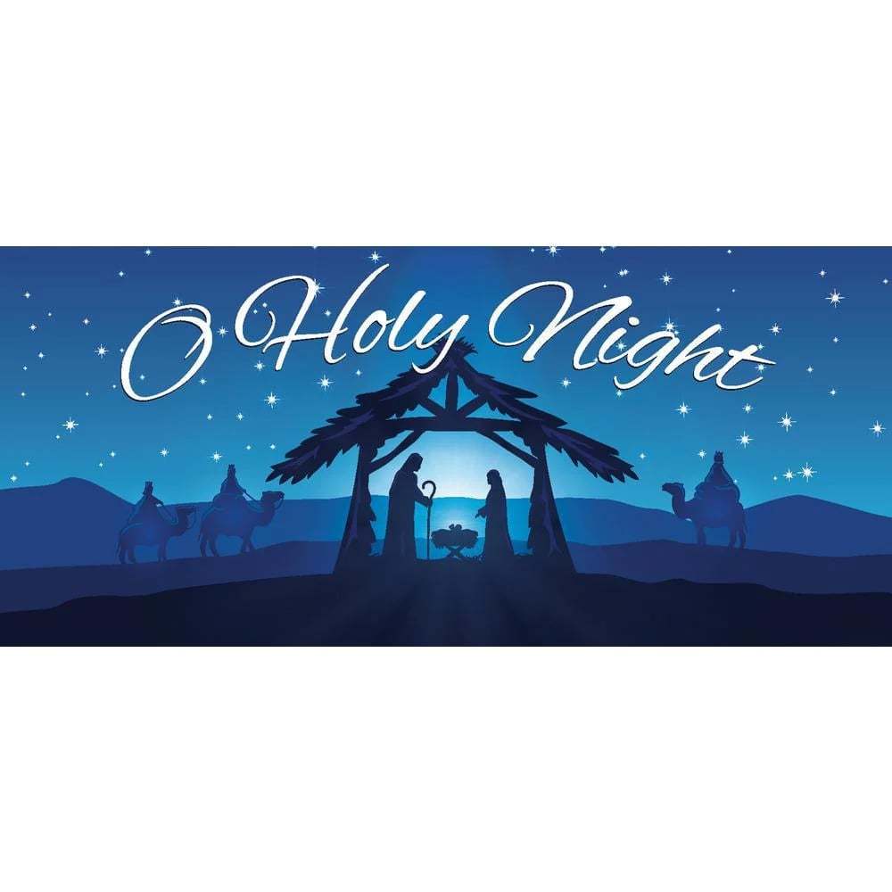 Nativity O Holy Night - Christmas Garage Door Decor - O Holy Night. The stars are brightly shining. It is the night of the dear Saviour's birth. Fits Standard 7 ft. x 16 ft. Garage Door. Flat or Paneled Garage Doors. Garage Door Decor is a Holiday Decoration that you hang on your garage door in a matter of just a few minutes. The Garage Door Decor makes it appear to people passing by that the garage door is open and you have a fun Holiday scene in your garage.  created and manufactures the Garage Door Decor and there is nothing else that compares to the Garage Door Decor in Quality, Designs and Pricing. Garage Door Decor is designed to work on standard roll up doors and flat doors. All Garage Door Decors are made of the highest quality materials and construction for many, many years of enjoyment. The Garage Door Decor comes to you fully assembled in a reusable storage box and ready to hang on your door. The hardware we have developed allows you to hang the Garage Door Decor in a matter of just a few minutes and you are able to use your garage door as you normally would. There is nothing attached directly to the door (tapes, screws, etc.).